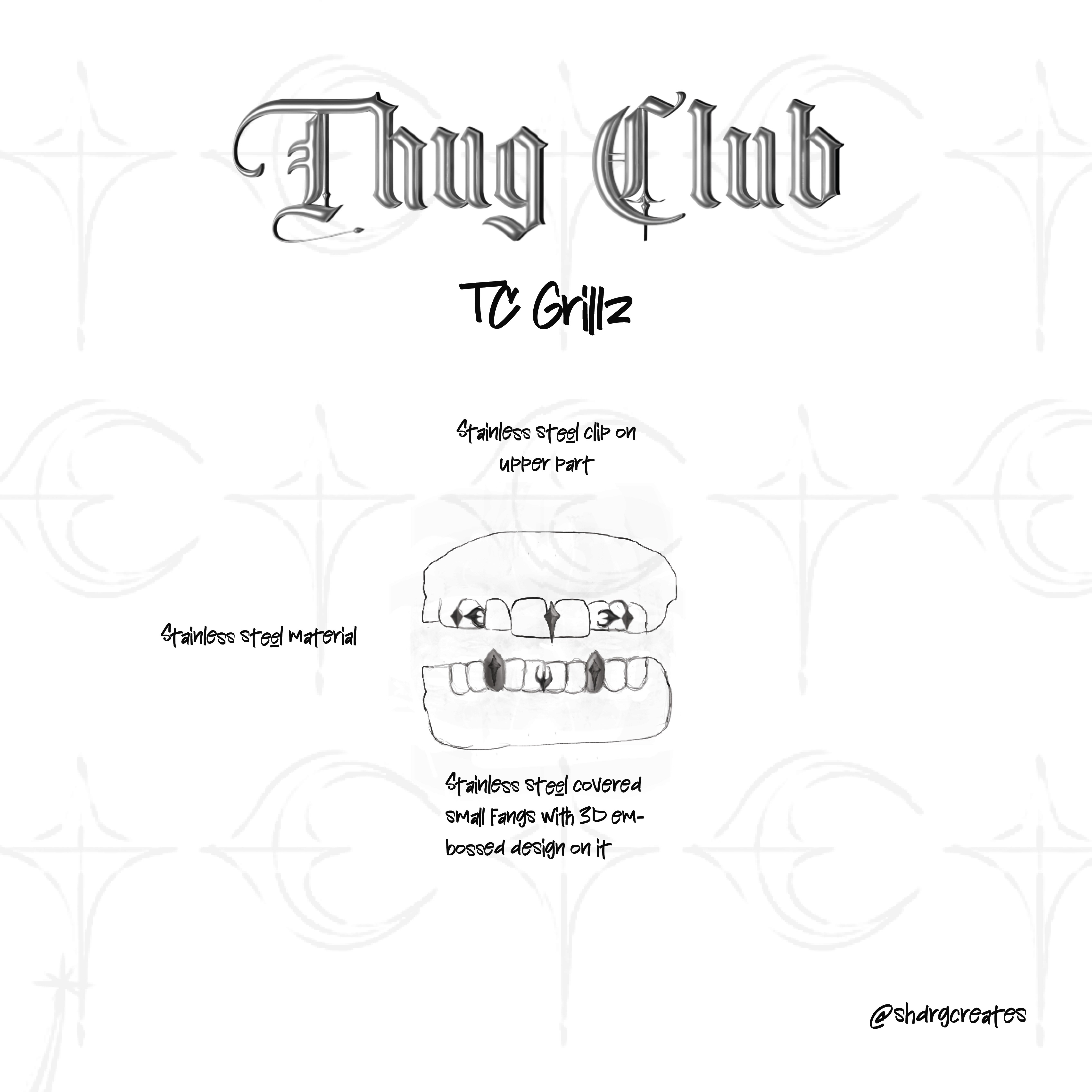 Inspired by Thug Club's identity through their website and already existing collection, I imagined a yet non-existent jewlry collection inspired by their medival and metalic vibe. This resulted in creating rings, earrings and a dental jewlry piece.